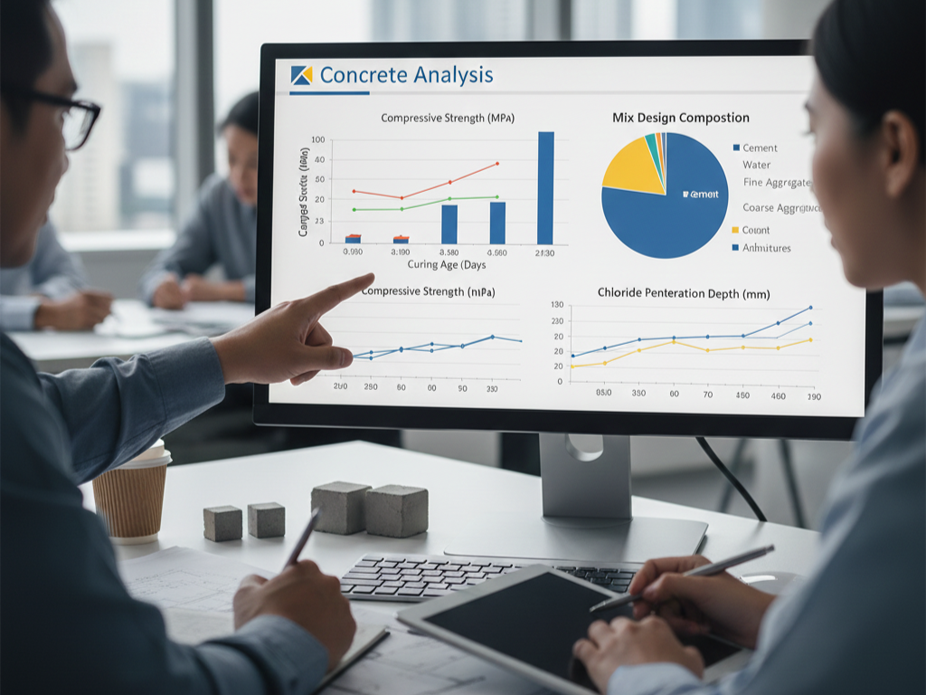 3. Mix Design Review & Optimization We review proposed concrete mix designs before construction begins to ensure they are suitable for the specific project environment (e.g., marine environments, high-rise pumping). We look at water-cement ratios, admixture dosage, and aggregate grading.
